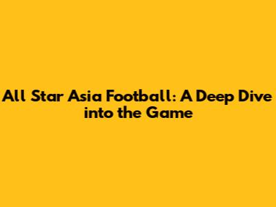 All Star Asia Football: A Deep Dive Into The Game