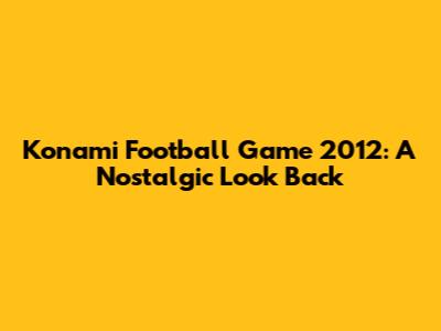 Konami Football Game 2012: A Nostalgic Look Back