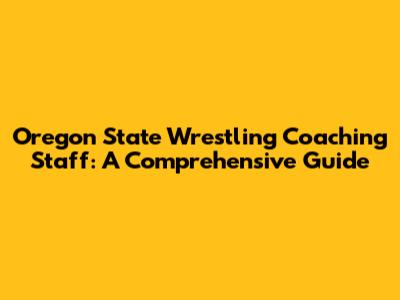 Oregon State Wrestling Coaching Staff: A Comprehensive Guide